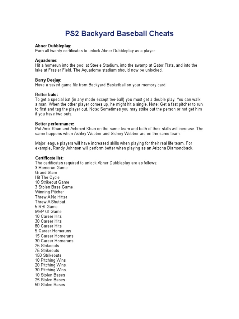 25 Top Photos Backyard Baseball Cheats / Backyard Baseball Best Lineup Igotree. Choose this team for a season to win every game easily, including the world series Earn all twenty certificates to unlock abner dubbleplay as a player. Win the backyard world series to unlock mr. When players have green backgrounds, they are going to have an average day. You can submit new cheats for this game and help our users gain an edge.